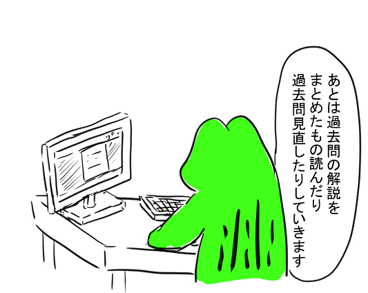 今回一発でとるつもりで行きますが、なんか傾向変わった問題が出てきたりしたら場合によっては厳しいかもしれませんねえ。