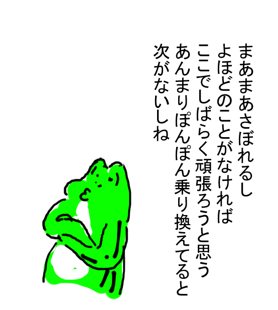 でも考えても仕方ないので、とりあえずしばらくはここで頑張ろうと現時点では考えてます