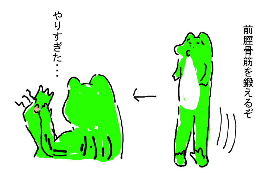 調子に乗って前脛骨筋を鍛えるためにかかと歩きとかしまくってたら逆にやりすぎたようで、足の甲がいたくなってしまいました